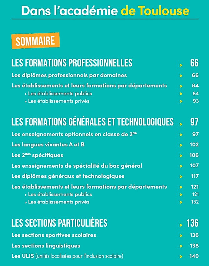 - Le carnet d'adresse de l'académie de Toulouse : pages 65 à 142 (sommaire en page 65)