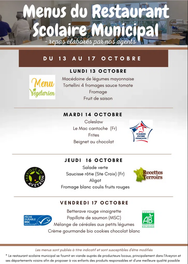Menus de la semaine du restaurant scolaire municipal